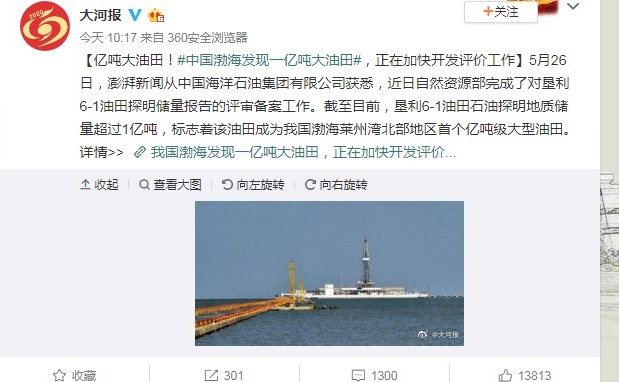 據(jù)介紹,墾利6-1油田是繼探明地質(zhì)儲量千億方大型凝析氣田渤中19-6之后,中國海油在渤海獲得的又一重大發(fā)現(xiàn)。